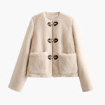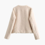 Introducing our Felyn Sheep Jacket, crafted from faux fleece for an effortless blend of style and function. This jacket features an O-neck design, making it perfect for everyday use and special occasions. With an autumn, winter, old money aesthetic, it seamlessly complements your look, whether you're enjoying a casual day out or attending a cozy evening event. Elevate your collection with this essential piece this season.