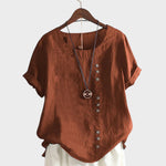 Desfrute de momentos descontraídos com a pessoa amada enquanto brilha com a nossa blusa colorida de manga curta com botões da Mia. Esta blusa elegante fá-la-á sentir-se confiante e confortável enquanto explora a cidade ou o ar livre, rodeada de cores vivas e do calor do seu parceiro.
