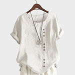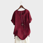 Porque escolher uma blusa Mia de cor lisa com decote redondo e manga curta?