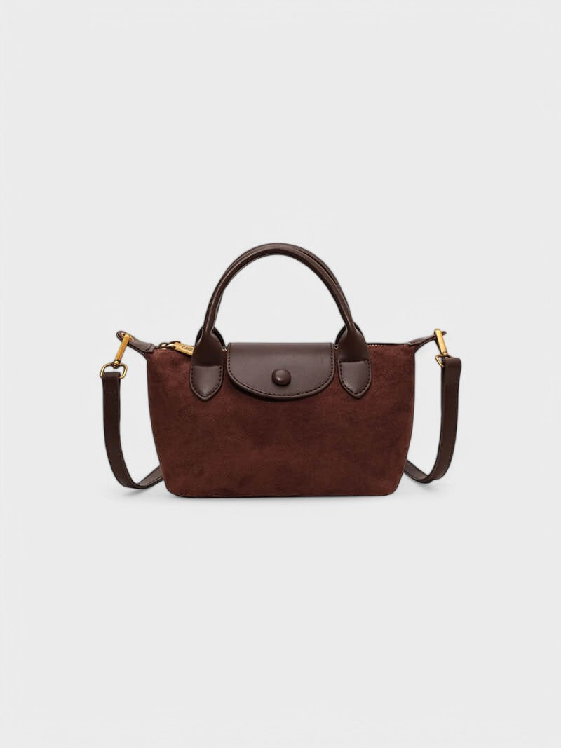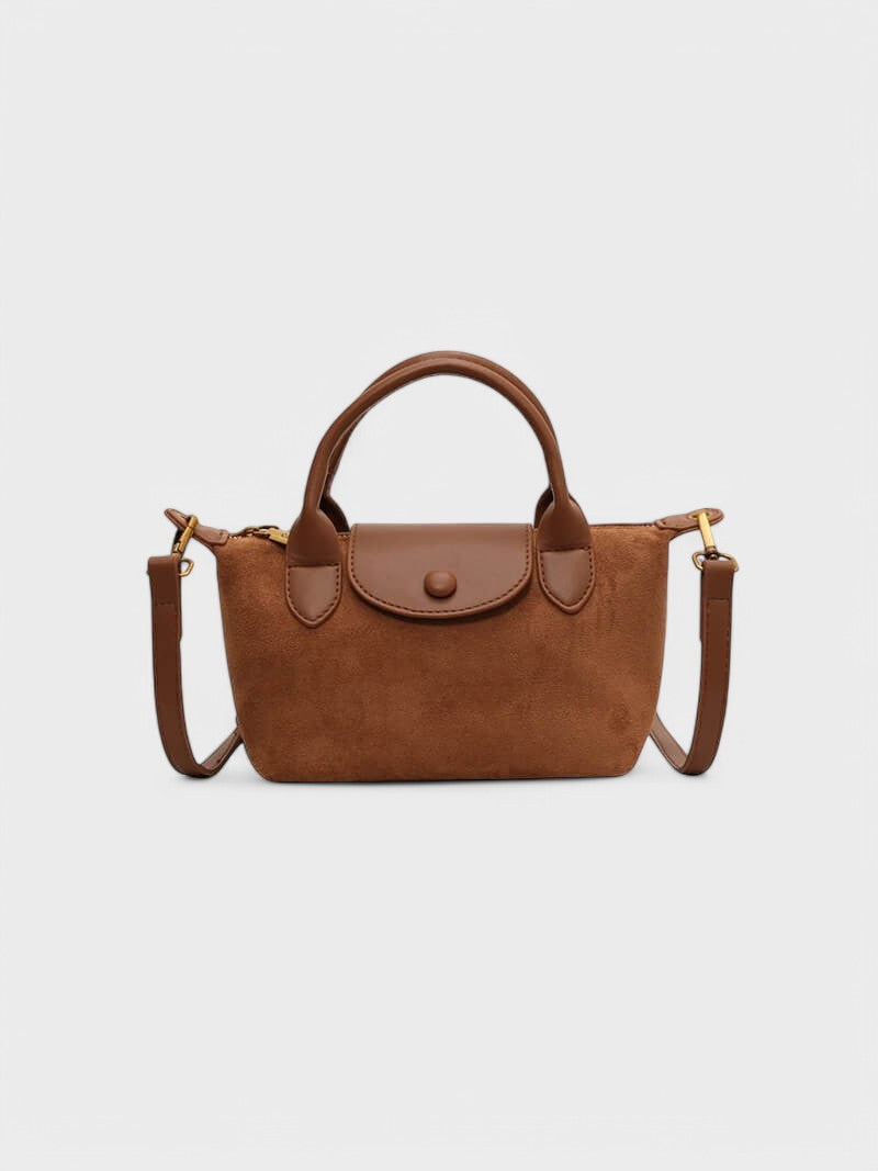 Apresentamos a nossa mini bolsa Lea, confeccionada em pele vegan e camurça para uma mistura de estilo e funcionalidade sem esforço. Esta mini mala de mão tem uma alça de ombro, o que a torna perfeita para o uso diário ou para jantar fora. Com uma estética outonal, invernal e antiga, complementa o seu visual na perfeição, quer esteja a fazer recados ou a sair à noite. Melhore a sua coleção com esta peça essencial.