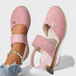 Estas sandálias com cunha são o equilíbrio perfeito entre conforto e estilo. Com design moderno e feminino, oferecem uma base estável, elástico para ajuste prático e uma palmilha macia que acompanha o movimento do pé. O tom nude e os detalhes em juta e cortiça tornam-nas ideais para looks casuais elegantes — desde passeios ao fim de semana até eventos ao ar livre.