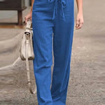 Versatilidade: Ideal para várias ocasiões, desde passeios informais até eventos mais casuais, estas calças de linho são fáceis de combinar com blusas e sandálias.
