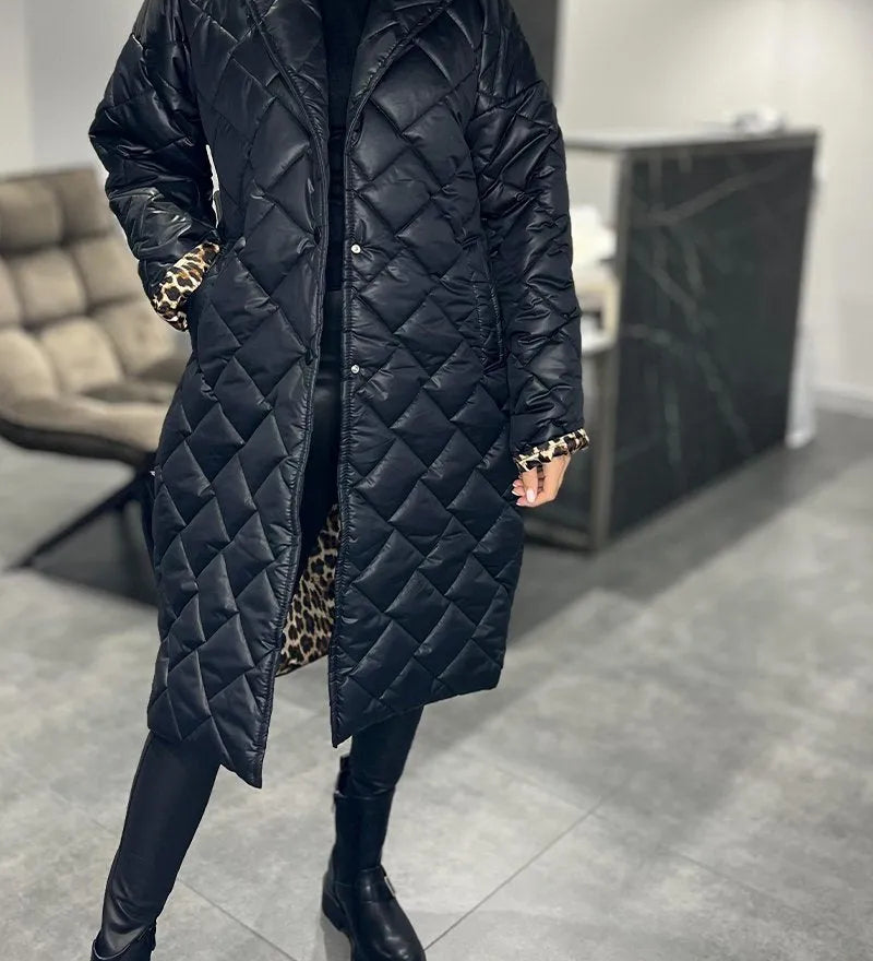 Margarida Lisboa™ - Casaco Acolchoado Reversível de Comprimento Médio com Forro Leopardo