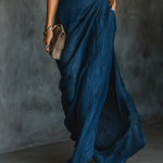 Um sofisticado conjunto longo confeccionado numa mistura de algodão e linho, com um estilo elegante adequado para diversas ocasiões.