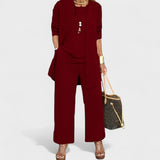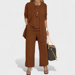 Este conjunto de 3 peças — calça de corte reto, camisola fluida e casaco leve alongado — traduz sofisticação com simplicidade. O design fluido e elegante proporciona uma presença marcante sem exageros, perfeito para quem valoriza conforto com estilo. Ideal para compromissos profissionais, encontros sociais ou momentos casuais onde o visual precisa impressionar com discrição.