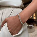 Realce a sua elegância com a pulseira Rivière, com um conjunto brilhante de pedras cintilantes. Banhada em ouro de 14k, esta sofisticada pulseira oferece um glamour intemporal e um toque refinado. Ideal para qualquer evento, acrescenta uma mistura perfeita de luxo e estilo à sua coleção de acessórios.