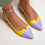 Estas bailarinas modernas com biqueira e tira traseira são a fusão perfeita entre elegância e criatividade. O seu design bicolor com perfil moldado confere um toque único que não passa despercebido, enquanto a sola plana as torna ideais para acompanhá-la com estilo desde a manhã até à noite. Fáceis de combinar tanto com calças elegantes como com looks mais casuais.