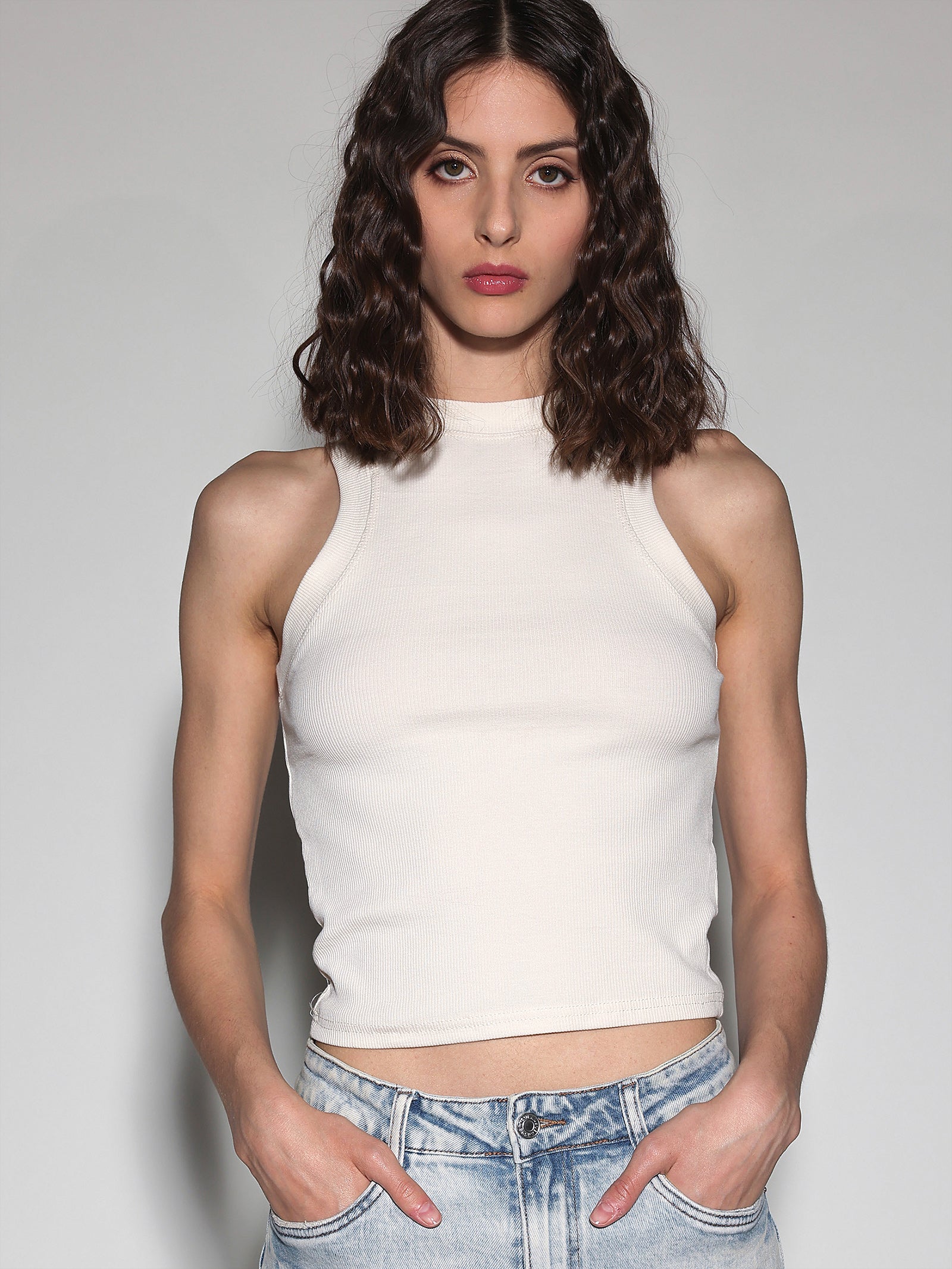 Descubra o top de gola alta com nervuras, uma peça indispensável para quem busca uma combinação perfeita de estilo e conforto. Com uma textura delicada e o corte que se ajusta ao corpo, este top é ideal para criar looks sofisticados, seja sozinho ou como base para sobreposições. A gola alta adiciona um toque de elegância atemporal, enquanto o tecido macio e com nervuras oferece um caimento impecável e uma sensação agradável na pele. É a peça-chave para transitar com facilidade do dia para a noite, adaptando-se a diversas ocasiões.