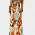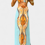 Este vestido longo combina sensualidade e sofisticação com um design que valoriza as curvas e um padrão vibrante que não passa despercebido. O corte estratégico com aberturas cria um visual ousado, perfeito para quem quer brilhar em eventos, festas ou momentos especiais à beira-mar.