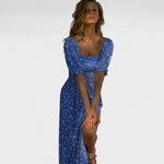 Este vestido comprido de inspiração romântica é a escolha perfeita para os dias quentes de verão. Com decote quadrado, mangas bufantes e corte cintado com elástico no busto, proporciona um caimento confortável e elegante.