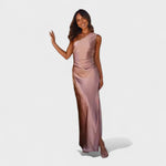 Este vestido longo de cetim com ombro descoberto é a definição de sofisticação minimalista. Com corte assimétrico, caimento fluido e uma discreta racha lateral, é a escolha ideal para ocasiões especiais, como casamentos, festas ou eventos formais. O brilho subtil do tecido realça a silhueta com elegância, enquanto o design clean permite combiná-lo facilmente com acessórios mais ousados ou clássicos.