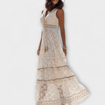 Sente a elegância descontraída do estilo boho com o nosso vestido maxi Érica. Perfeito para qualquer ocasião, combina uma silhueta fluida em linha A com delicados detalhes em renda, garantindo um visual sofisticado e relaxado ao mesmo tempo.