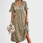 Com um ar leve e feminino, este vestido midi de estampa floral é a escolha perfeita para dias ensolarados e passeios encantadores. Sua modelagem solta, com mangas curtas e decote suave, traz conforto sem abrir mão do charme. Ideal para um visual descontraído com elegância natural, ele transita facilmente entre o casual chique e o estilo boho.