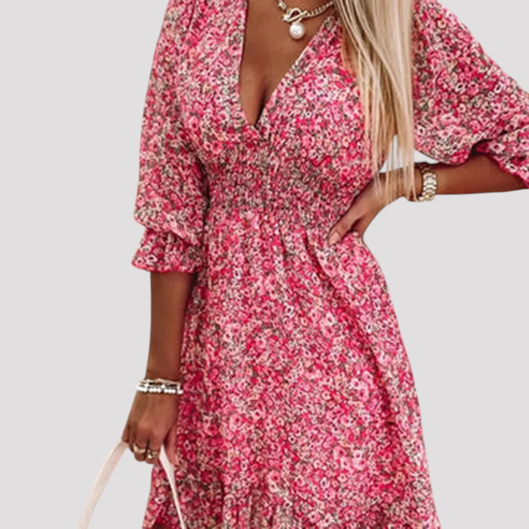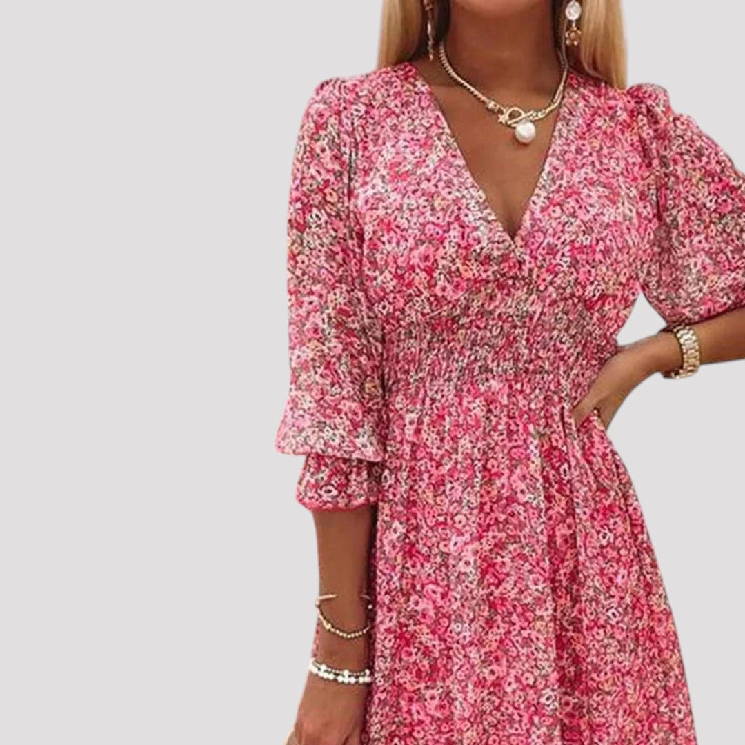 Este vestido floral é a escolha perfeita para quem procura um visual delicado e confortável. O design feminino e o corte fluido garantem um ajuste elegante, destacando a silhueta de forma suave. Ideal para os dias mais quentes, oferece praticidade e frescura, sendo a peça que não pode faltar no seu guarda-roupa para a primavera e o verão.