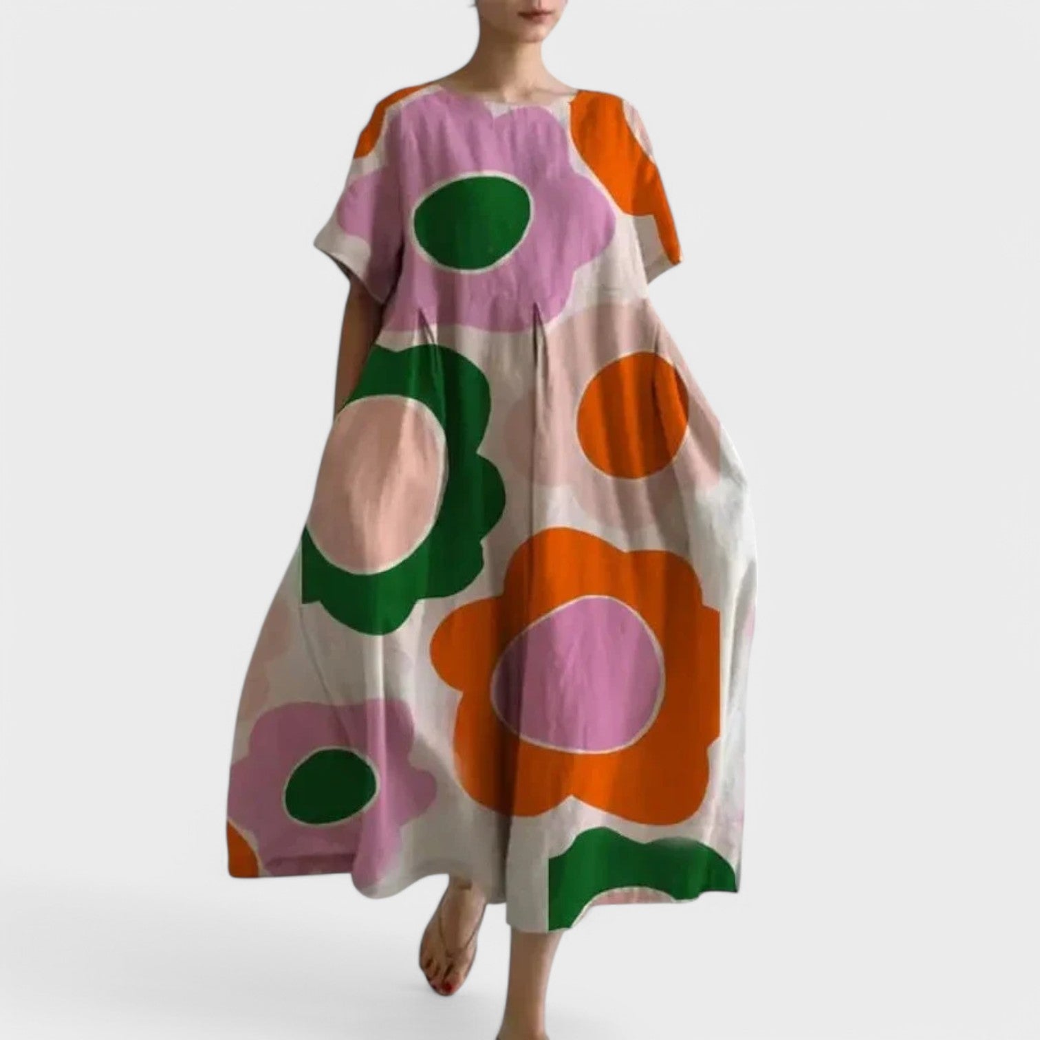 O vestido Mila é a escolha perfeita para quem valoriza conforto com estilo. Com um corte solto e fluído, estampa floral em verde e azul sobre fundo claro, e bolsos discretos, este vestido transmite leveza e originalidade. Ideal para dias de primavera ou verão, é fresco, confortável e com um toque artístico que o torna único. Perfeito para um passeio descontraído, um almoço ao ar livre ou momentos de relaxamento com charme.