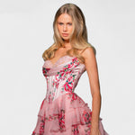 Descubra a essência da sofisticação neste deslumbrante vestido de gala, uma verdadeira obra-prima da alta costura. Com um corpete estruturado que valoriza a silhueta e uma saia em camadas fluidas e delicadas, este modelo traz um charme romântico e atemporal.