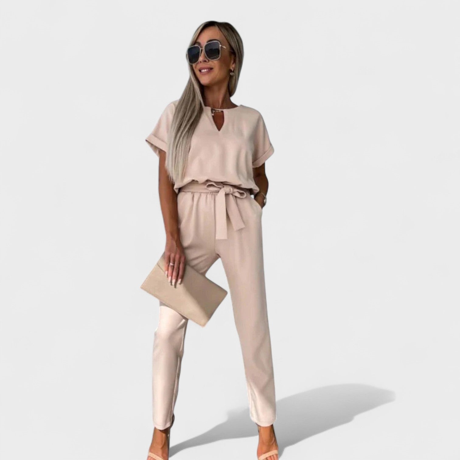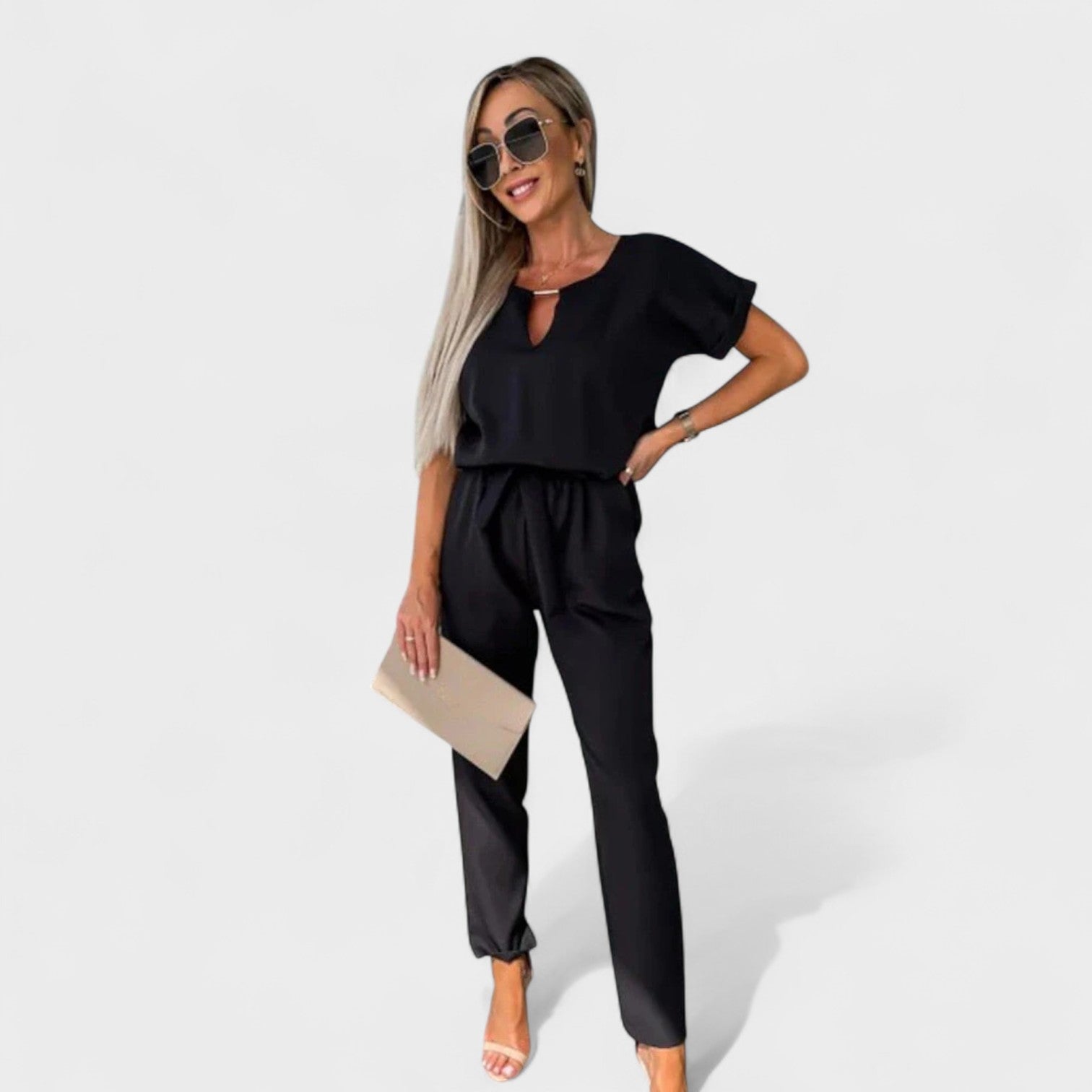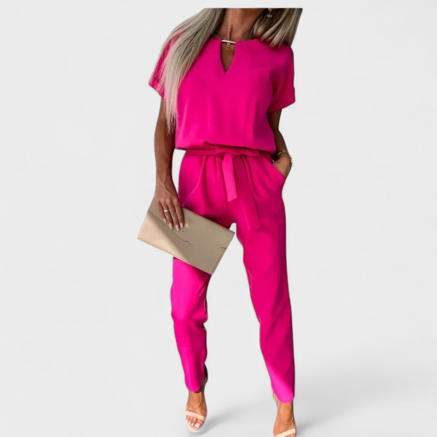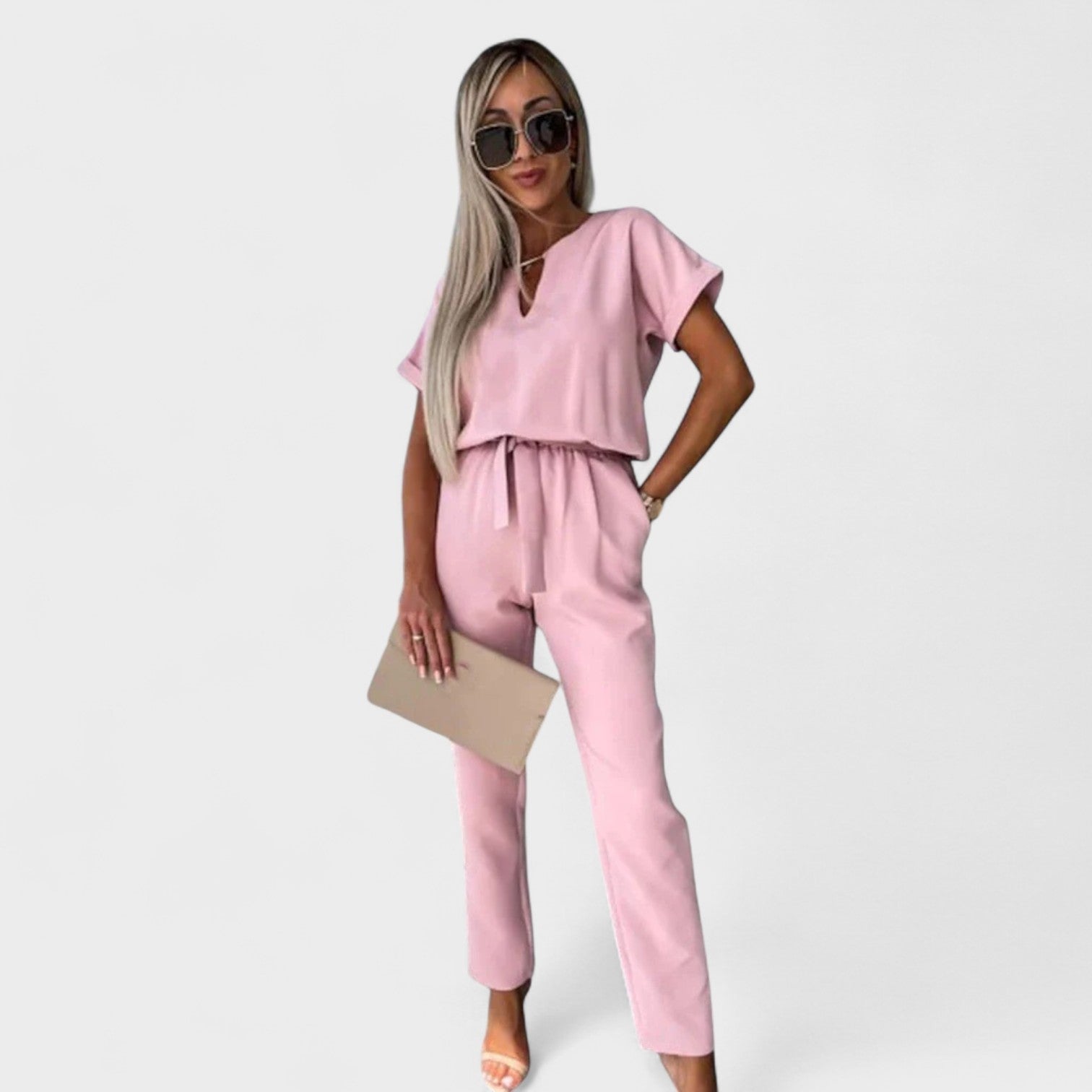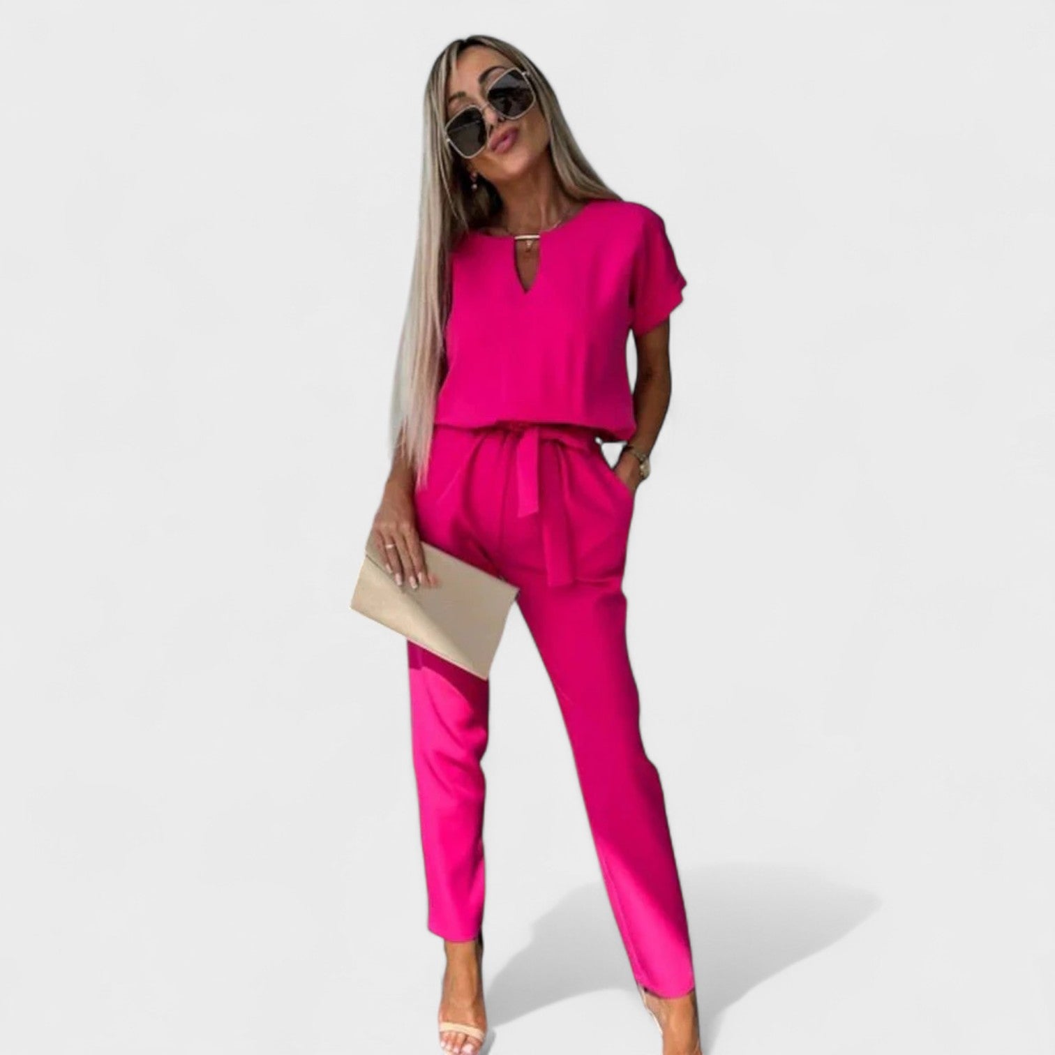 Este macacão une elegância e praticidade com um corte moderno e fluido que valoriza o corpo sem esforço. O decote subtil e a cintura marcada com laço conferem um ar sofisticado, ideal para mulheres que querem marcar presença com confiança, seja no trabalho ou num evento social. Um look inteiro com zero complicações — só vestir e arrasar.