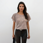 A blusa Emily se destaca pelo seu vibrante estampa total, que, juntamente com os detalhes elegantes de babados no colarinho e nas mangas, confere um charme delicado. Esta blusa é a escolha perfeita tanto para o dia a dia quanto para ocasiões especiais, combinando estilo casual com toques femininos.