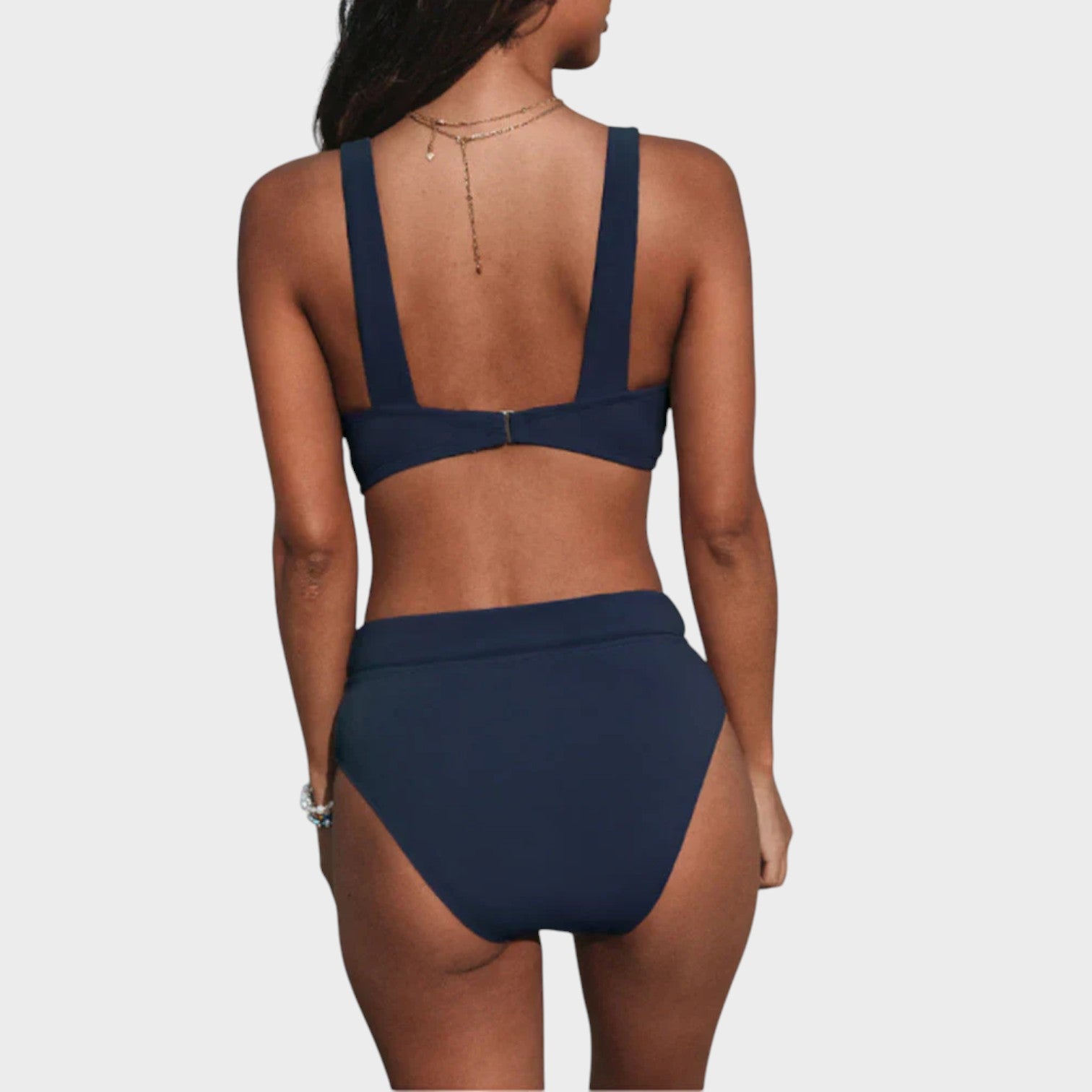 Este biquíni foi feito para mulheres que querem se sentir lindas e seguras na praia ou na piscina. Com top estruturado e alças largas para maior sustentação, ele oferece conforto sem abrir mão do estilo. A calcinha de cintura alta modela suavemente a silhueta, garantindo um visual elegante e moderno.