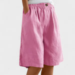 Estes calções largos em linho são a escolha perfeita para dias quentes e descontraídos. Com um corte solto que oferece total liberdade de movimentos e um tecido leve que respira com a pele, garantem frescura e conforto durante todo o dia. A cintura elástica com detalhe de botão adiciona um toque prático e moderno, ideal para um estilo casual com elegância natural.