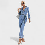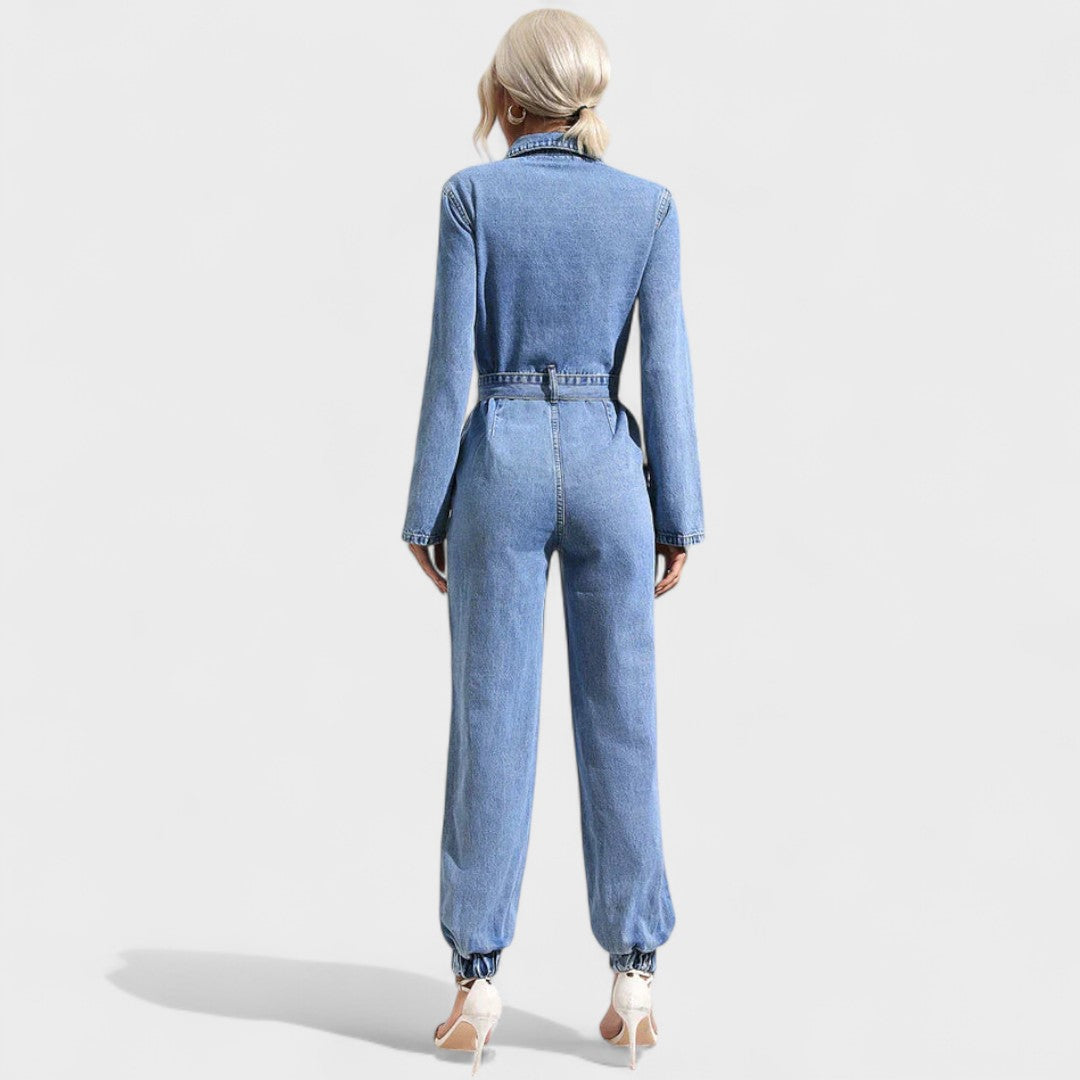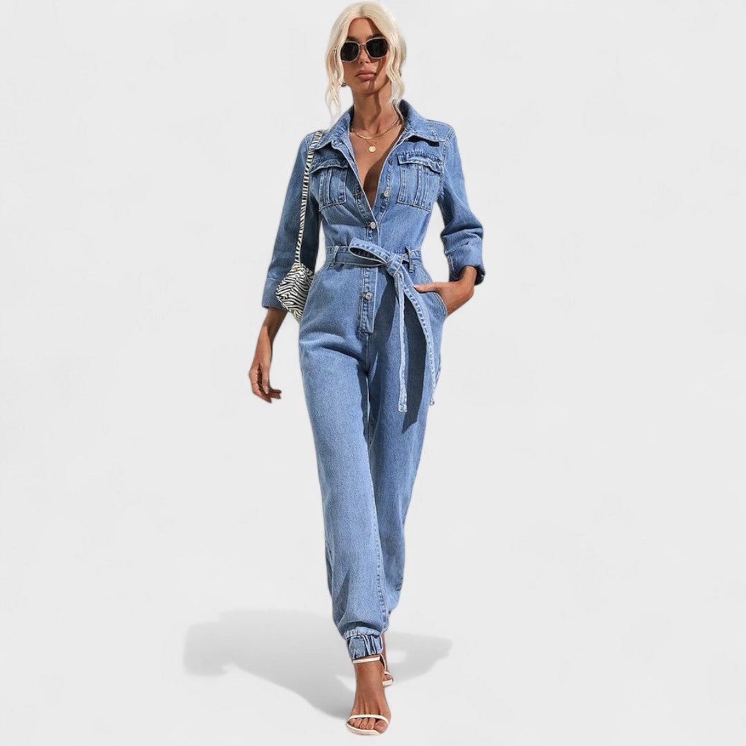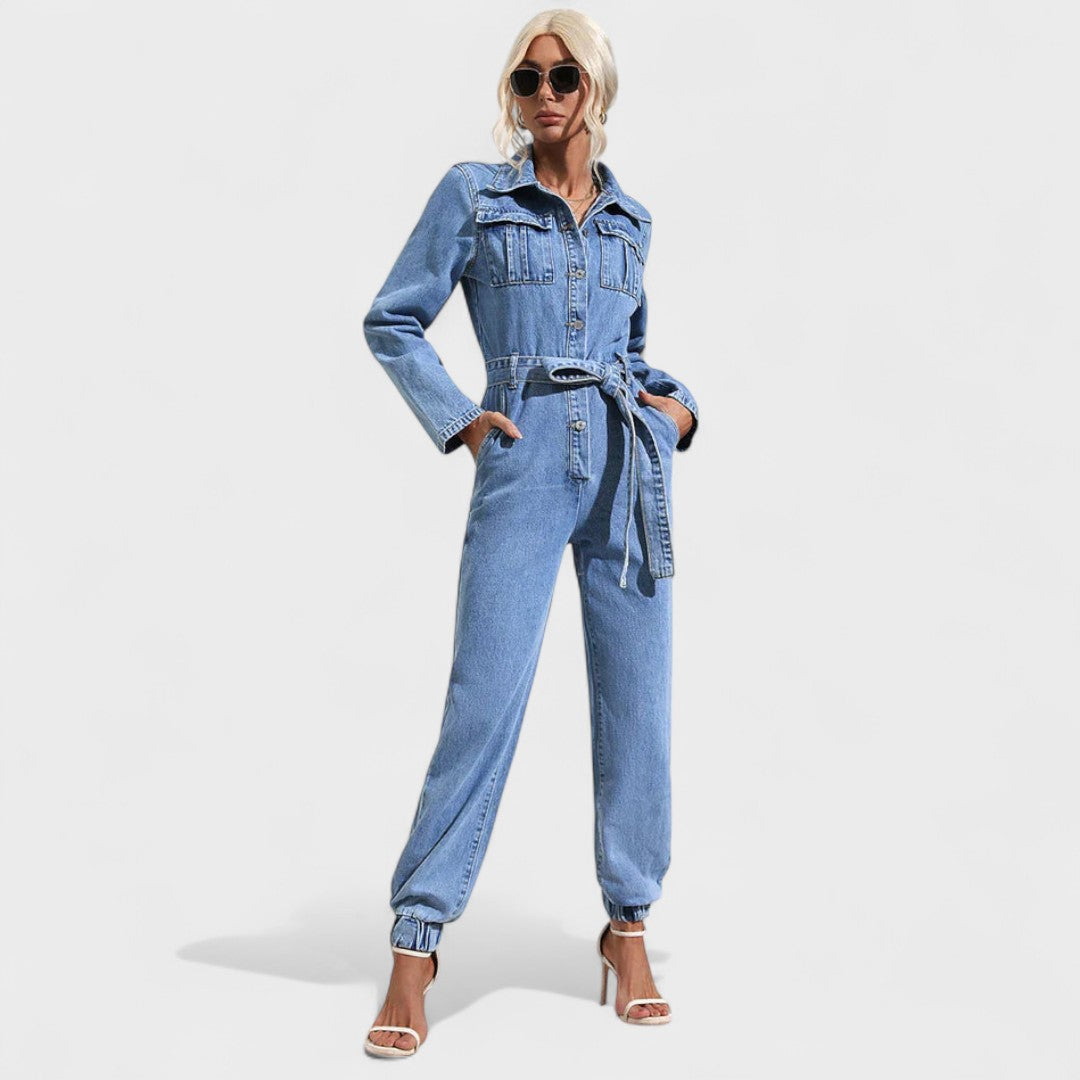 Joana - Macacão de ganga casual com cinto