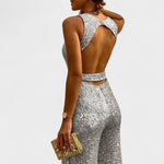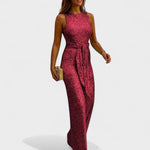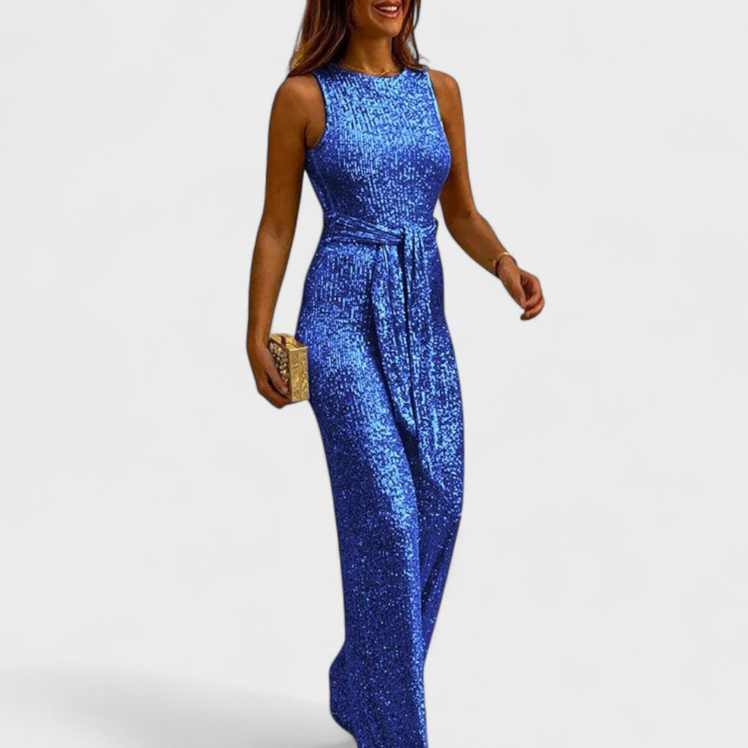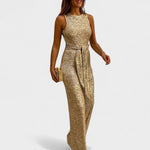 O macacão perfeito para quem quer entrar numa festa e ser imediatamente o centro das atenções. Este macacão dourado com lantejoulas transforma qualquer ocasião num verdadeiro desfile de glamour. Com um corte elegante, sem mangas e um cinto que valoriza a silhueta, é a escolha ideal para eventos especiais, jantares de gala ou noites inesquecíveis.