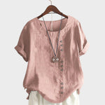 Porque escolher uma blusa Mia de cor lisa com decote redondo e manga curta?
