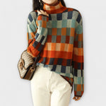 Este confortável e elegante suéter destaca-se pelo seu vibrante padrão xadrez. Com um decote alto e um corte que favorece, é uma peça de destaque que realça qualquer conjunto com facilidade.